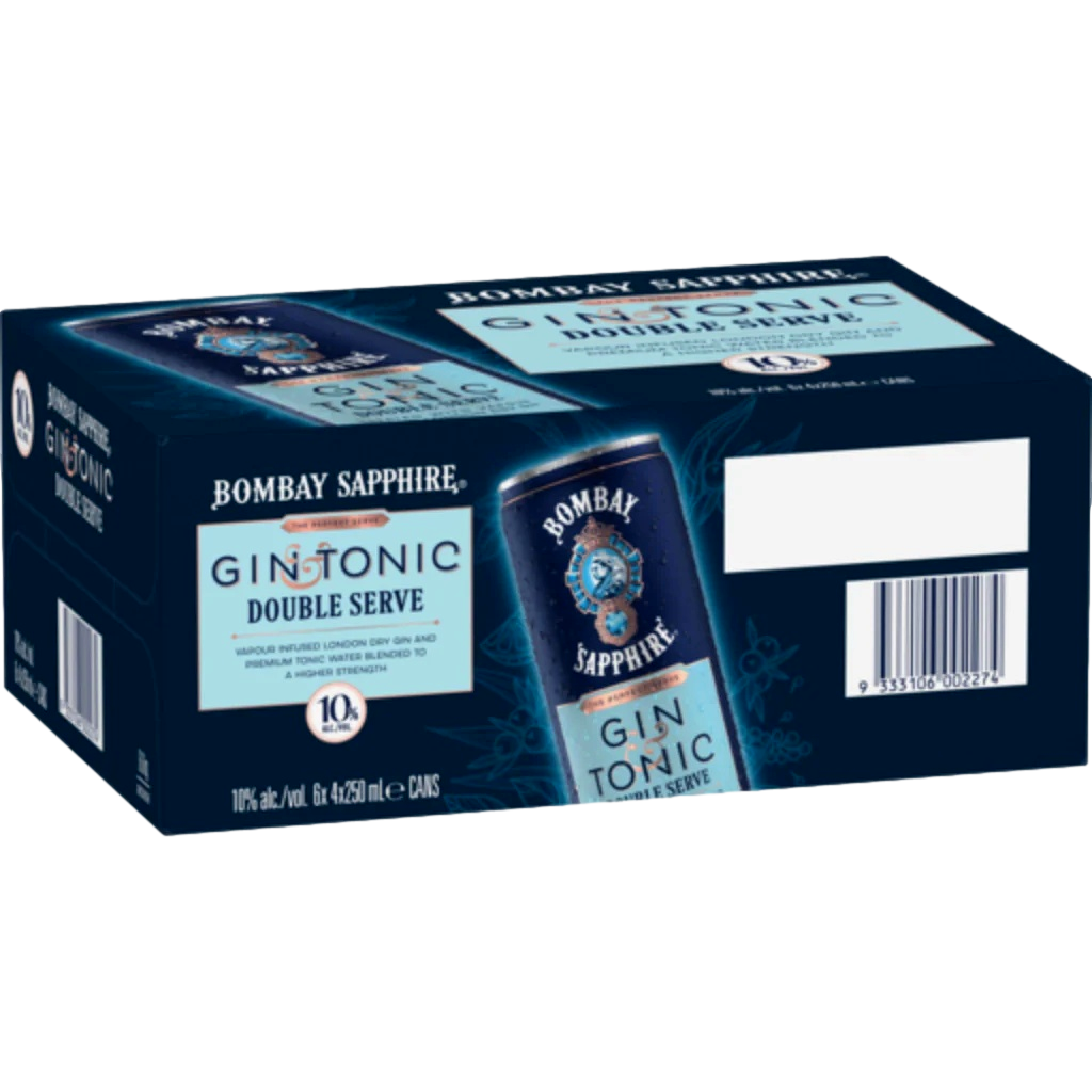 A double serve of BOMBAY SAPPHIRE gin mixed with just the right amount of tonic to deliver a bold and refreshing citrus taste that can be enjoyed wherever you are. Best enjoyed chilled straight from the can or poured over ice with a slice of lime.