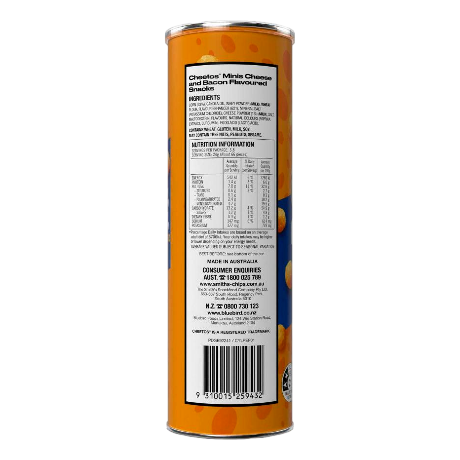 Cheetos Minis Cheese and Bacon Flavoured Snacks Canister 90g